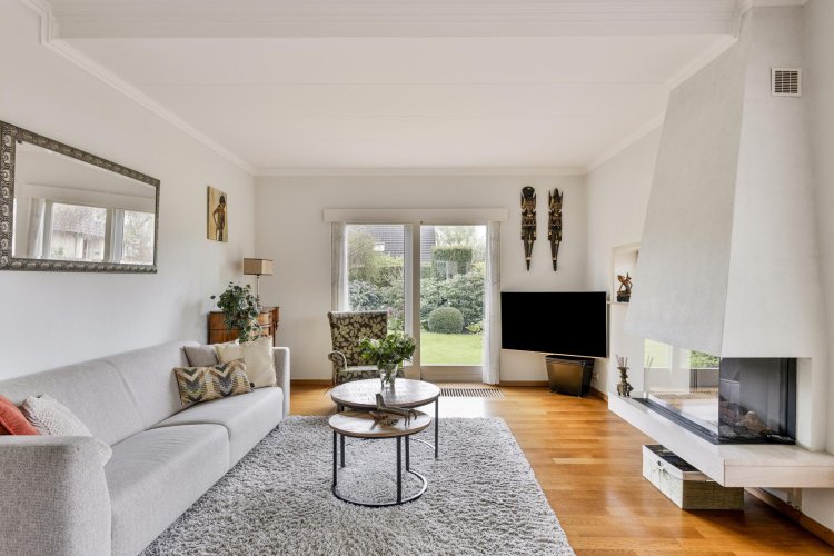 De voordeur wordt eigenlijk niet gebruikt, maar voor de volgorde gebruiken we de voordeur. Bij binnenkomst staat u in de hal met de meterkast en toilet. Deur naar de royale woonkamer, waar de ruimte en het licht gelijk opvallen. Buiten komt hier echt naar binnen. Prachtig uitzicht aan de voorzijde en u ziet hier echt in het groen. Een fijne gashaard zorgt in de wintermaanden voor een prettige sfeer. In de zomer kunt u via de schuifpui heerlijk genieten van de prachtige tuin.