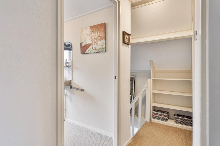 Via de trap bereiken we de eerste verdieping. Hier bevinden zicht twee royale slaapkamers, één aan de voorzijde en de andere aan de achterzijde. Een praktische berging met CV- ketel en als u meer bergruimte wenst brengt een vlizotrap u naar de bergzolder.