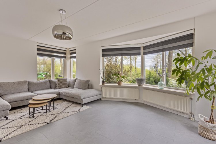 Entree, hal, trapopgang, meterkast en keurig toilet. Aan de voorzijde van de woning bevindt zich een heerlijk lichte woonkamer met erker. Vanuit hier lopen we door naar de ruime eethoek met ruimte voor een grote eettafel. Aan de achterzijde van de woning is de halfopen keuken gesitueerd. Deze ruime hoekkeuken is voorzien van diverse inbouwapparatuur. Vanuit zowel de keuken als de eetkamer loop je zo de royale achtertuin in.